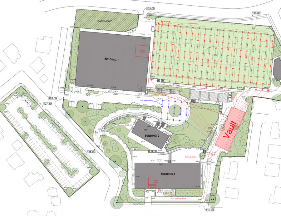 Available site areas are evaluated to identify feasible locations for geothermal bore field installation. Site constraints such as existing utilities, future development plans, access requirements, and operational considerations are incorporated into the analysis. Preliminary bore field layouts are developed to minimize disruption, maintain flexibility for future site use, and to integrate effectively with overall site planning.
